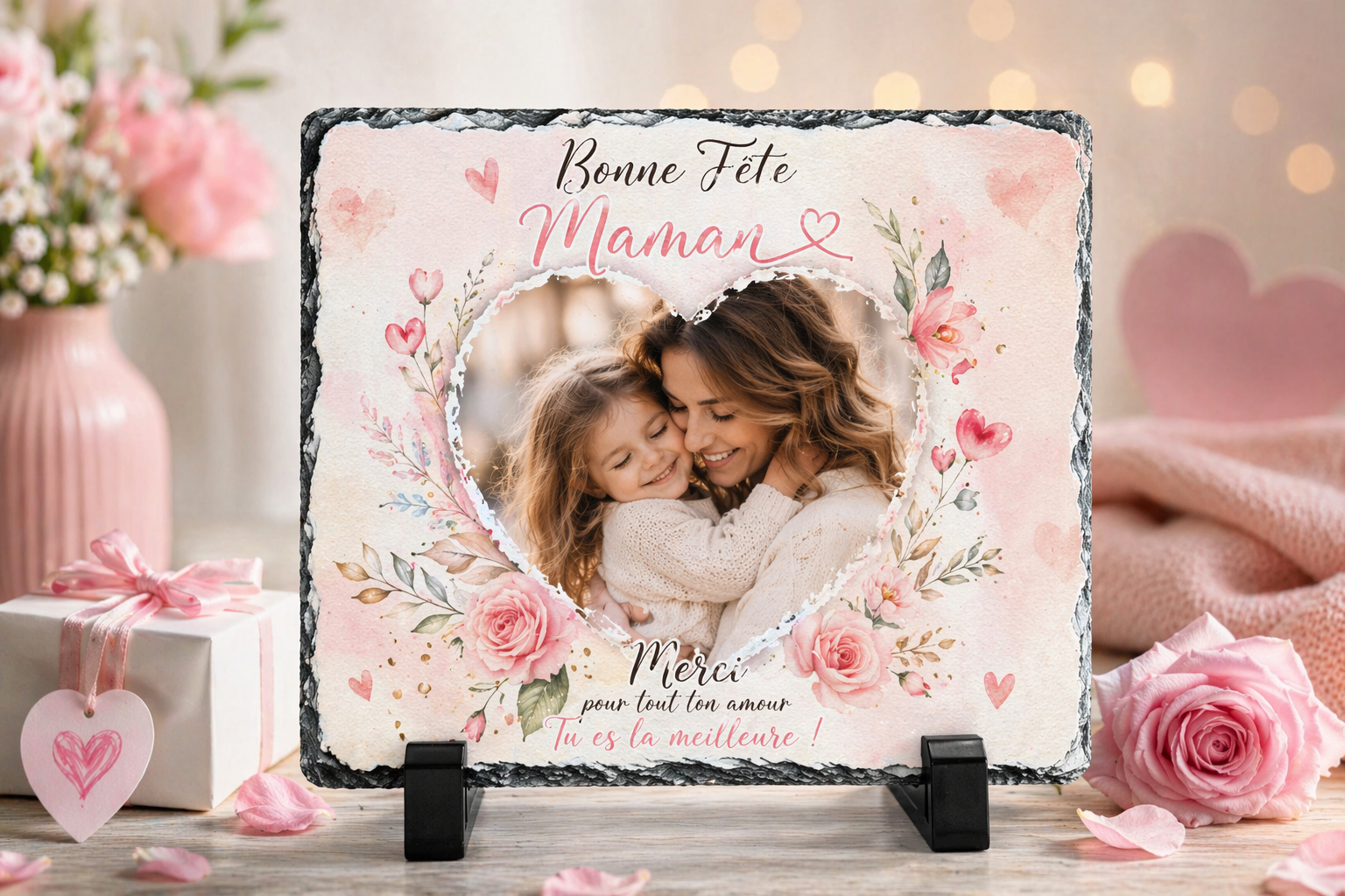 Ardoise Personnalisée Fête des Mères – Photo & Prénom(s) | Cadeau Unique Maman 💝